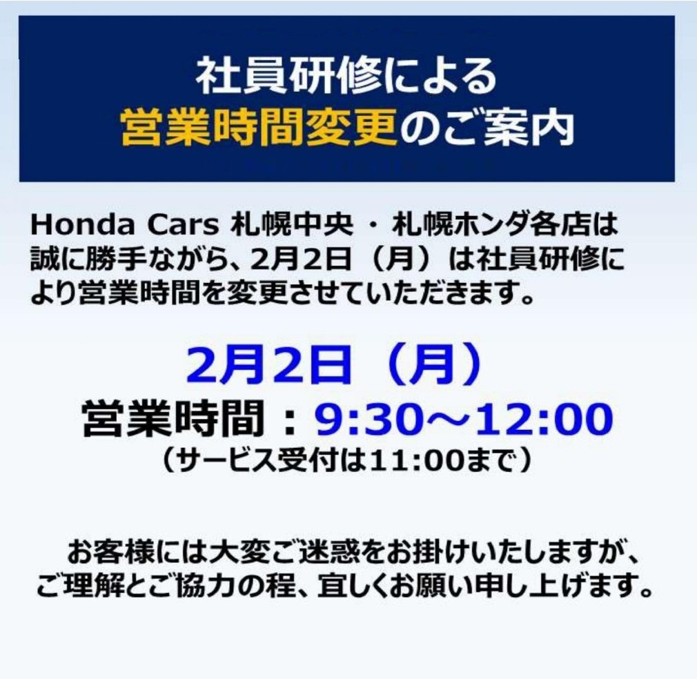 2月2日(月)の営業時間変更のご案内